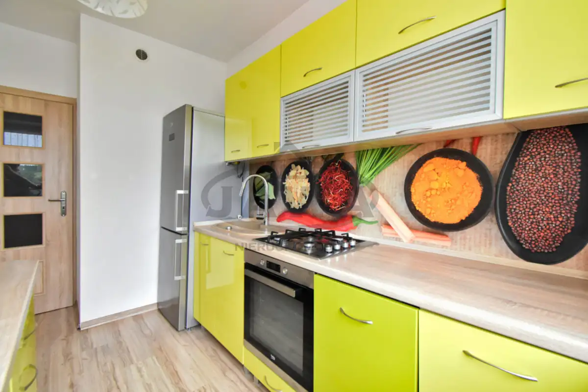 W zabudowie kuchennej znajdziemy płytę gazową, piekarnik, zmywarkę oraz wolnostojącą lodowkę - to zatrzymuje po zakupie nowy właściciel. Pozostaje również szafa w zabudowie w korytarzu, szafa w sypialni wraz z łóżkiem i materacem a także komoda, stół z krzesłami oraz narożnik w salonie.