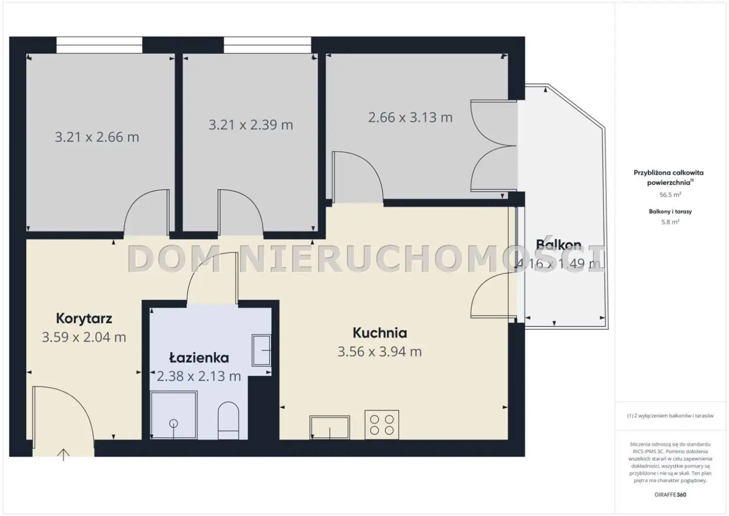 Na powierzchnię ponad 58,62 m² składają się: