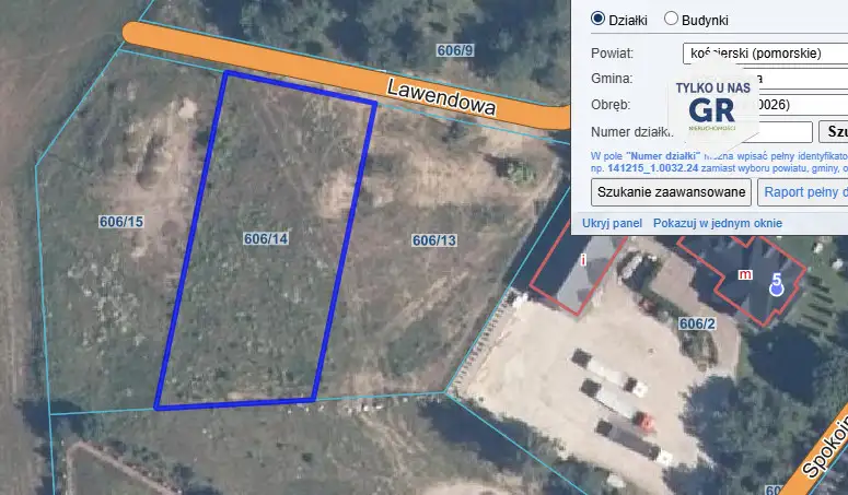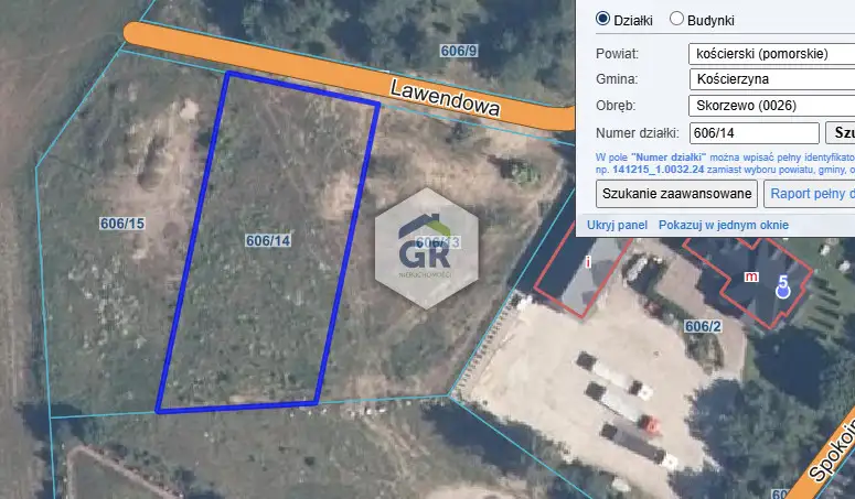 ✷ nr sprzedawanego gruntu 606/14 obręb Skorzewo