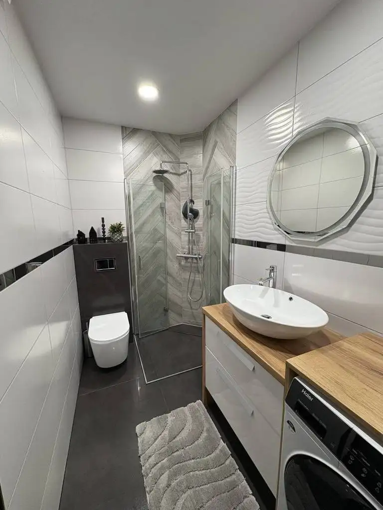 Estetyczna, jasna łazienka, ergonomiczna, przemyślana i komfortowa.