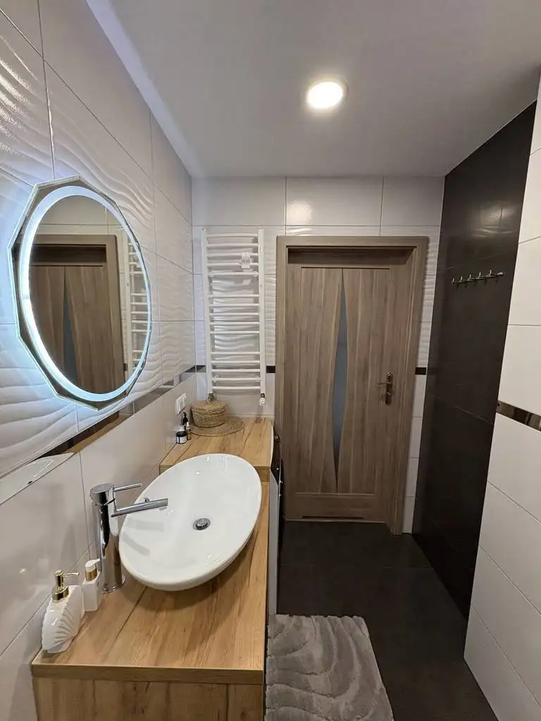 Wnętrze wykończone z dbałością o każdy detal, świeżo malowane w 2024, jasne i przyjemne dla oka i ducha.