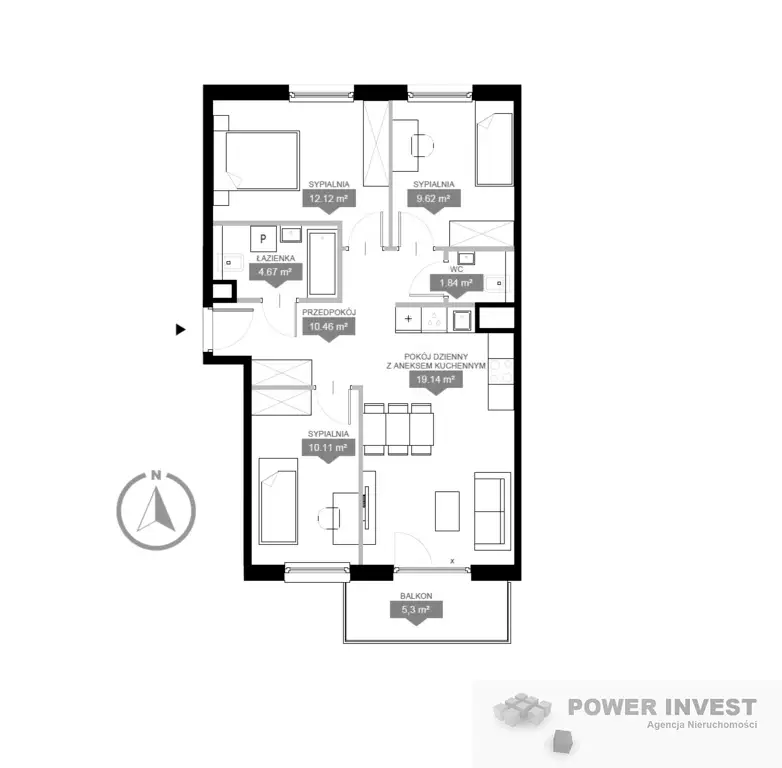 Mieszkanie jest w stanie DEWELOPERSKIM. Zdjęcia przedstawiają wizualizację obiektu.