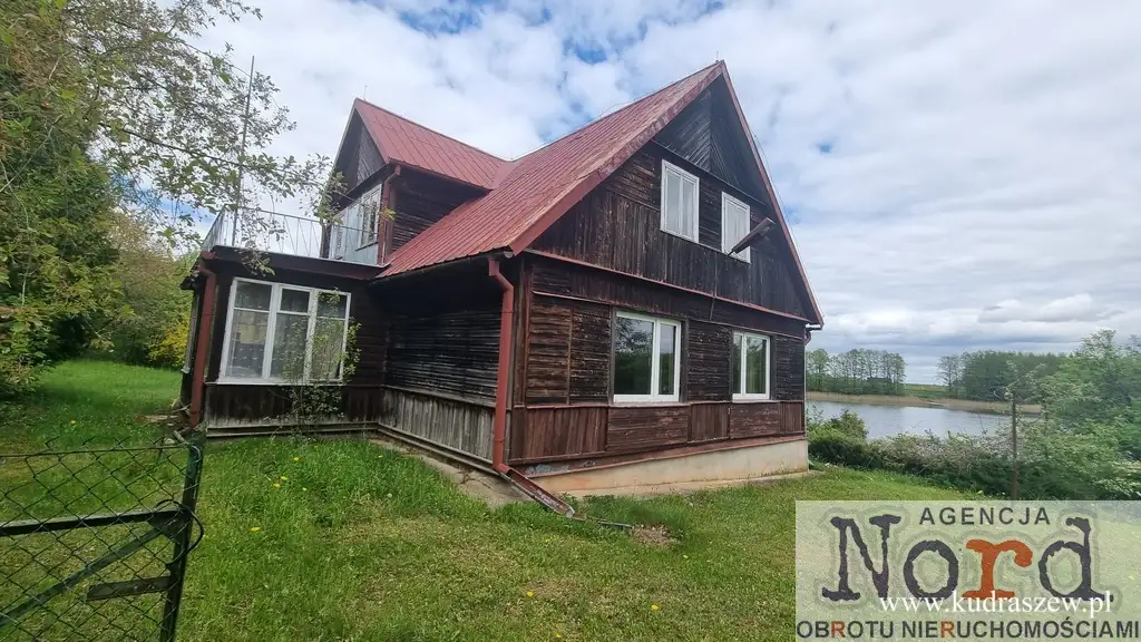 Dom z bala posadowiony 15 m od linii brzegowej jeziora.