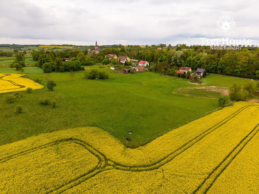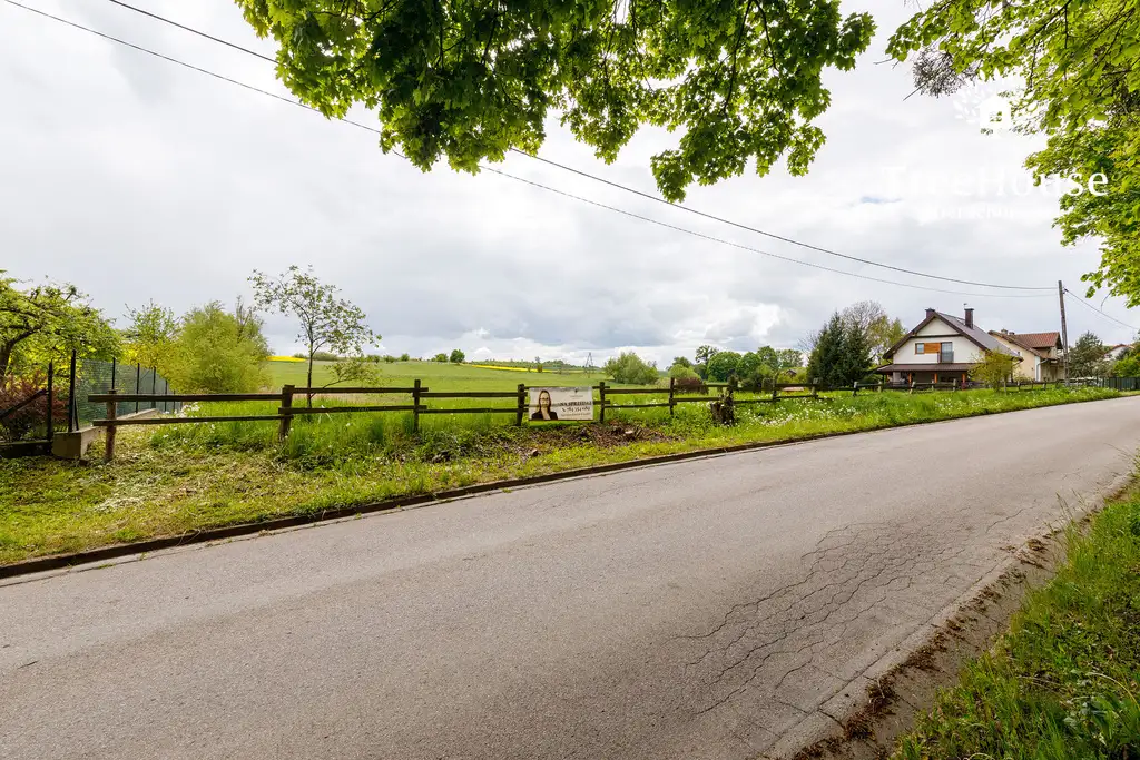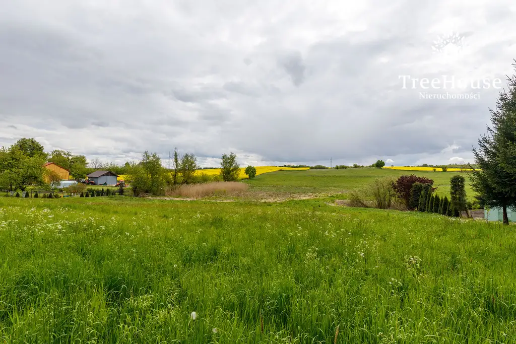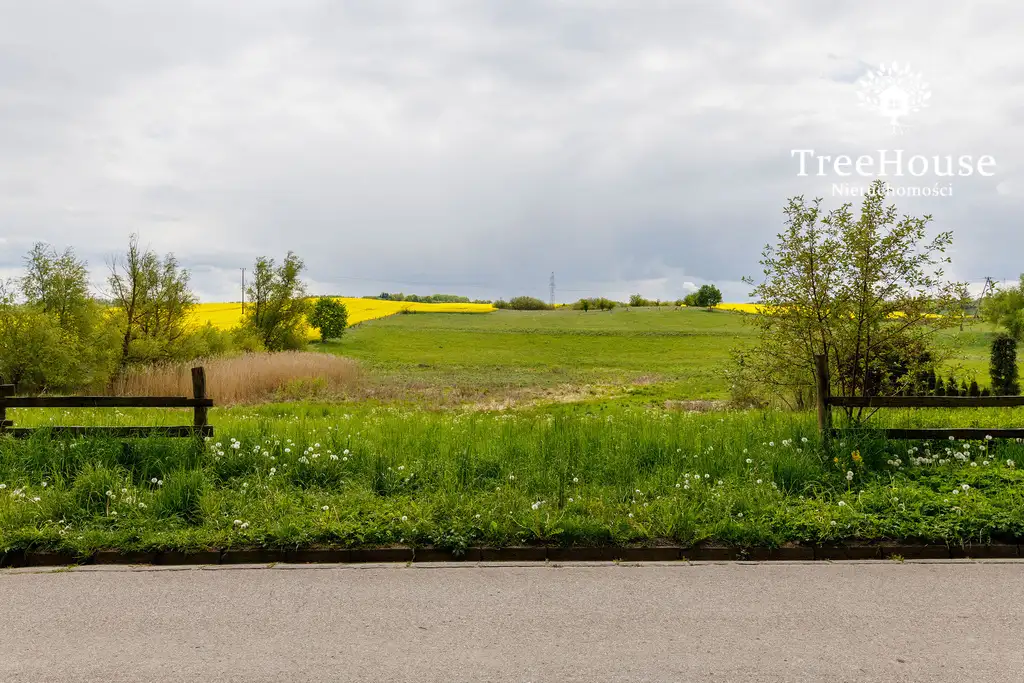 Działka graniczy z zabudową jednorodzinną oraz położona jest pomiędzy polami.