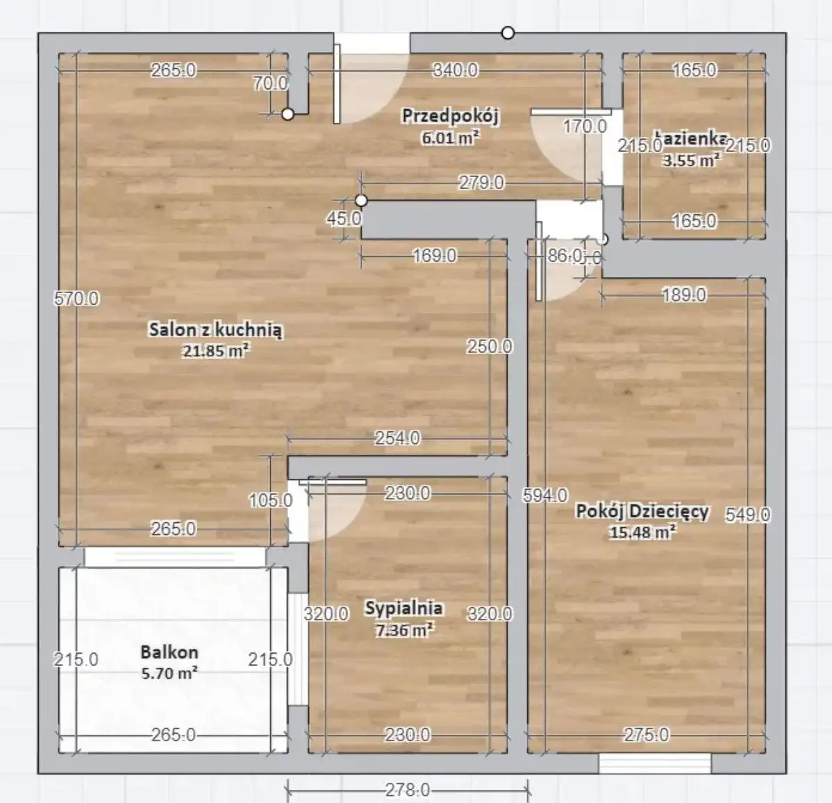 Dodatkowe pomieszczenia: balkon zadaszony (ok. 5,7 m²)