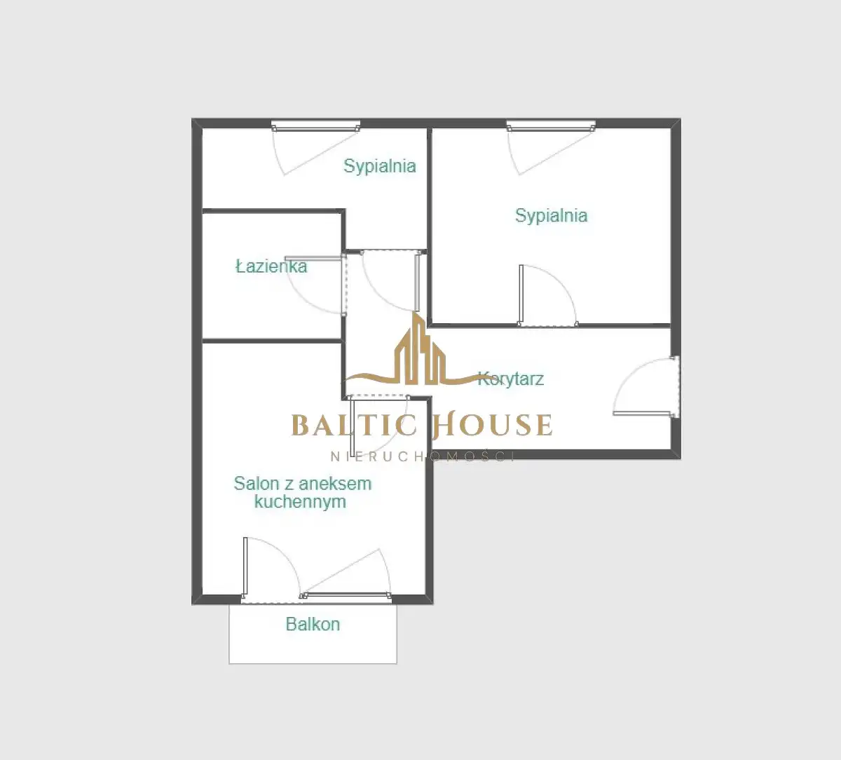 - salon z aneksem kuchennym oraz wyjściem na balkon,
