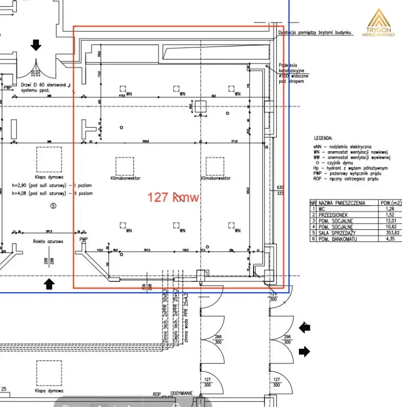 Prywatne wyjście na ulicę daje dodatkowe możliwości otwarcia lokalu poza godzinami działania galerii. Całkowita powierzchnia wynosi 127 m². Można w nim prowadzić dowolną działalność gospodarczą. Otwarta przestrzeń pozwala na dowolną adaptację.