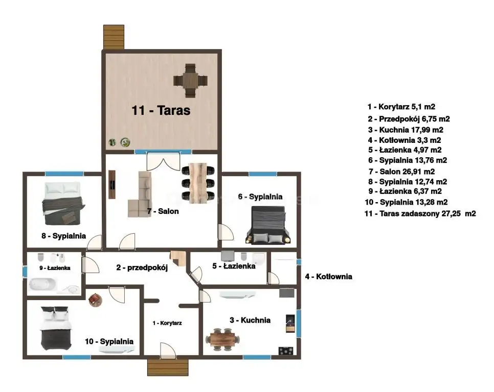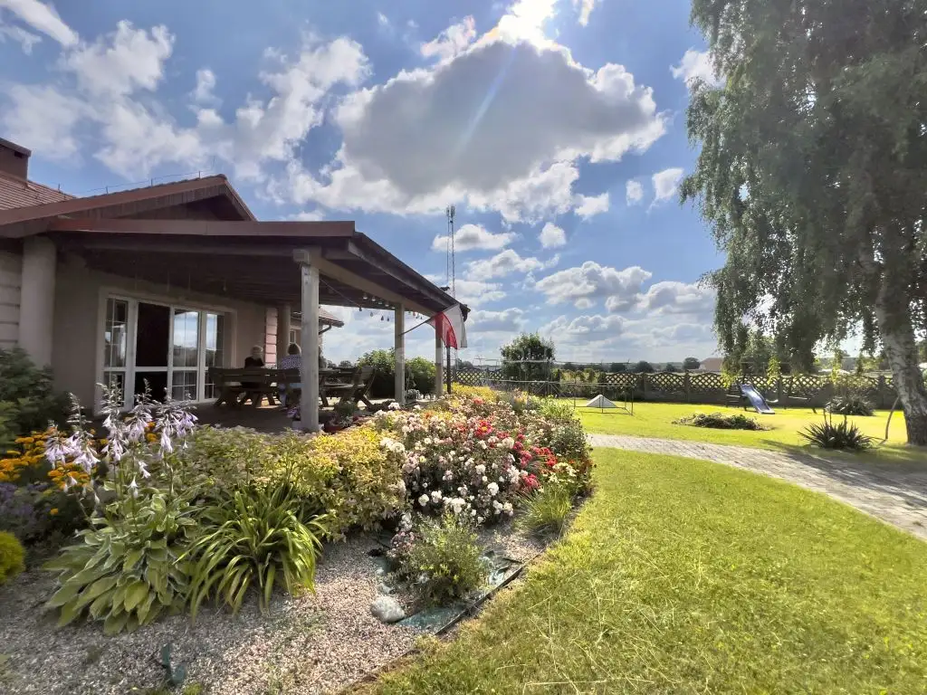 Ten piękny dom na sprzedaż koło Kątów Wrocławskich był zbudowany z myślą o właścicielach i ich wygodzie. Charakteryzuje się starannością wykonania oraz użyciem materiałów wysokiej jakości. Przestronny salon, trzy sypialnie, dwie łazienki, dużą, kuchnia, garaż oraz dodatkowy budynek gospodarczy to ponad 110 metrów wygody. Dopełnieniem oferty jest zadaszony taras, który stwarza idealne warunki do odpoczynku i grillowania niezależnie od pogody, a także ogród pełen kwiatów z systemem nawadniania i panelami solarnymi. Na działce znajduje się studnia a woda z deszczu odprowadzana jest do podziemnych zbiorników.