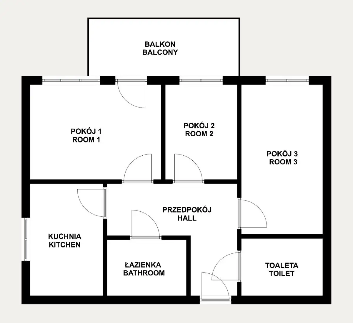 Pokoje: 3 niezależne pokoje, zamykana kuchnia, przedpokój, łazienka, balkon