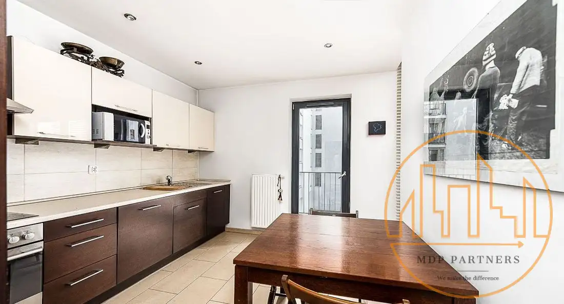 Widna, oddzielna kuchnia (10 m²) z drugim wyjściem na taras - funkcjonalna i w pełni wyposażona (zmywarka, mikrofala, lodówka ). Możliwość przeniesienia kuchni do salonu i wygospodarowania 4 pokoju.