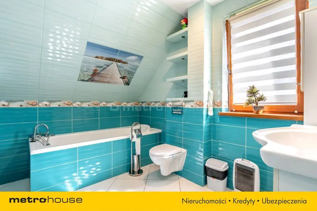 Na piętrze 3 sypialnie i łazienka z wanną i prysznicem.