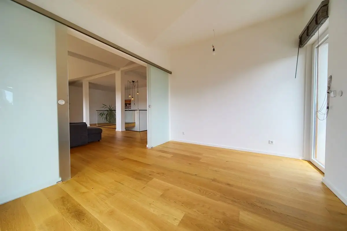 Z tej samej centralnej klatki schodowej dostępne jest również niezależne, komfortowe mieszkanie rodzinne. Funkcjonalny układ obejmuje jasną kuchnię otwartą na przytulny salon, tworząc idealne miejsce do wspólnego spędzania czasu, trzy ustawne, dobrze doświetlone sypialnie zapewniające prywatność każdemu z domowników, oraz nowoczesną łazienkę z WC. To doskonała propozycja dla rodziny z dziećmi lub jako atrakcyjna inwestycja pod wynajem.