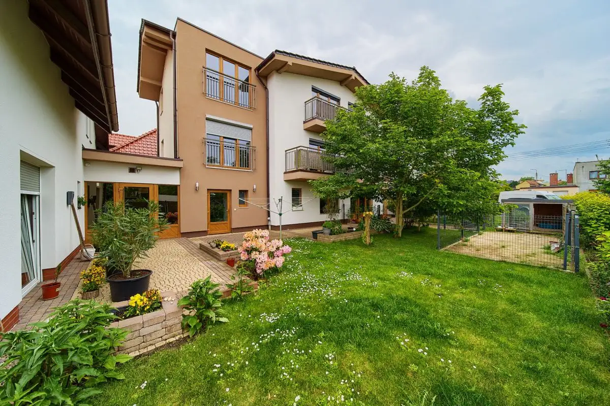 Jako doskonałe uzupełnienie nowoczesnego budynku wielofunkcyjnego, na terenie posesji znajduje się również urokliwy, wolnostojący dom jednorodzinny, wybudowany w 2001 roku. Oferuje on bardziej tradycyjny układ mieszkalny i pełnię prywatności. Na parterze domu znajdziemy otwartą strefę dzienną z salonem i funkcjonalnym aneksem kuchennym, dodatkowy, wszechstronny pokój idealny na gabinet lub gościnną sypialnię, oraz łazienkę. Piętro to typowa strefa nocna z trzema przytulnymi sypialniami oraz drugą, komfortową łazienką. Dom ten posiada bezpośrednie wyjścia na słoneczny taras z widokiem na ogród oraz dodatkowe, boczne wyjście na taras - idealne miejsca do wypoczynku na świeżym powietrzu. Zewnętrzne rolety zapewniają mieszkańcom większą prywatność i bezpieczeństwo, a praktyczne wejście na strych oferuje cenną, dodatkową przestrzeń do przechowywania.