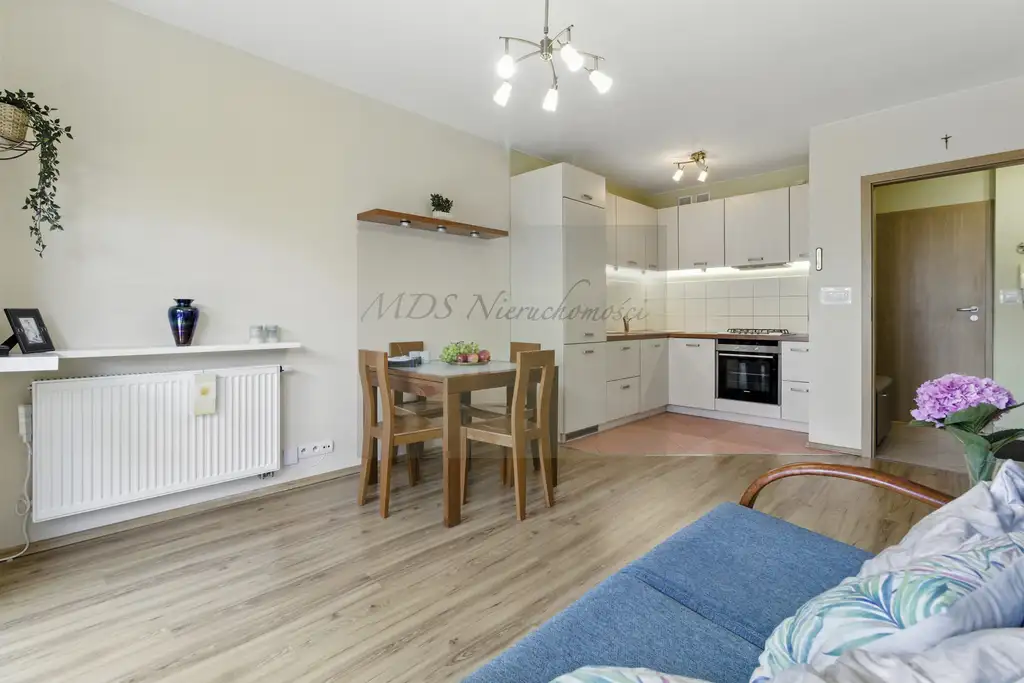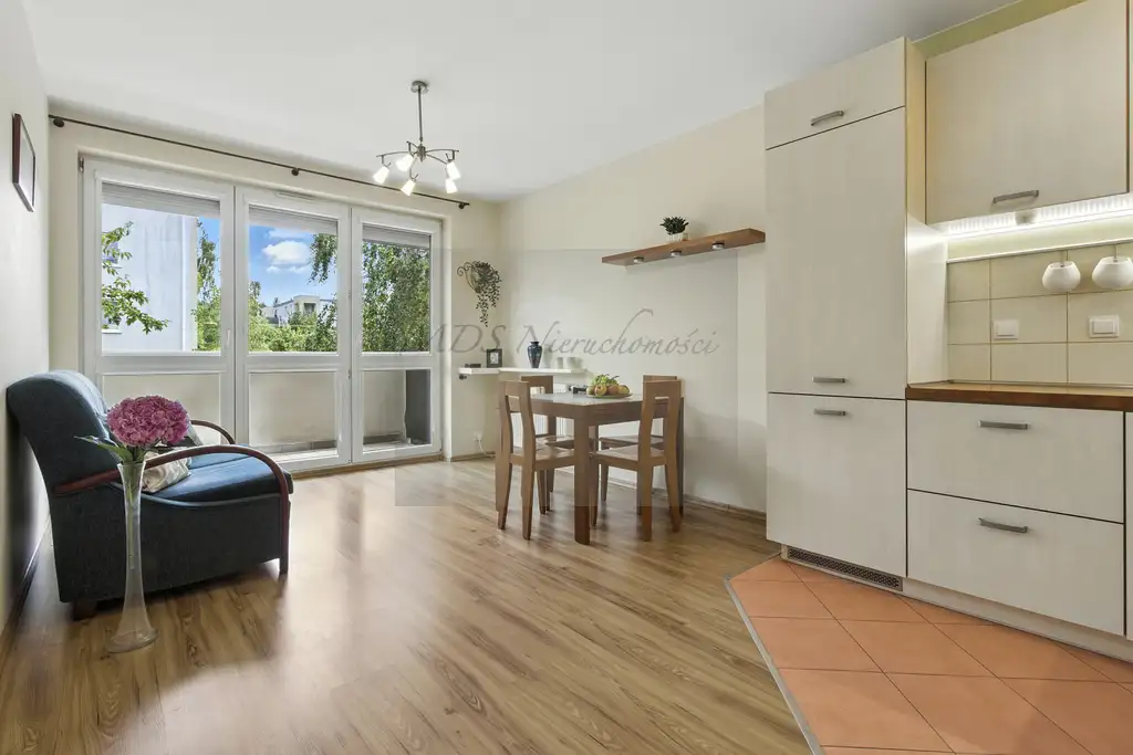 Mieszkanie usytuowane na wysokim parterze oferuje doskonałe doświetlenie dzięki oknom skierowanym na południowy wschód. Przestronny salon (10,3 m²) płynnie łączy się z funkcjonalnym aneksem kuchennym, tworząc otwartą strefę dzienną idealną do relaksu i spotkań. Przytulna sypialnia (10,3 m²) zapewnia spokojny wypoczynek, a wygodny przedpokój (4,5 m²) z zabudową meblową oferuje miejsce do przechowywania.