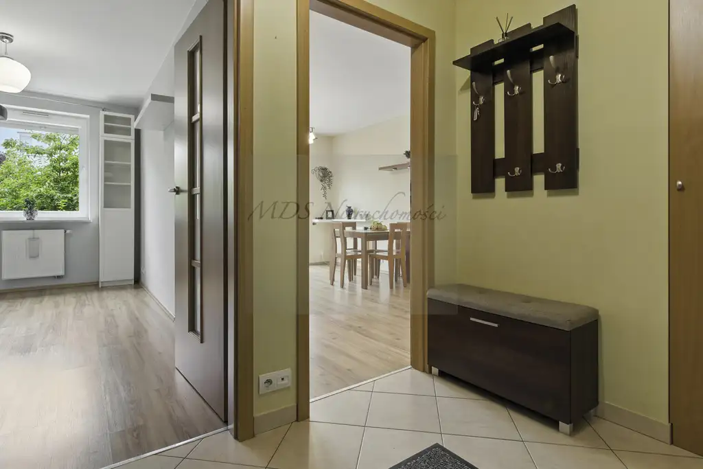 The apartment comes with a spacious storage unit (approx. 6 m²) with two shelving units, and a ground-level parking space—a mandatory requirement with purchase, which solves the parking problem in the district center. An additional fee of PLN 20,000 is charged for the storage unit and PLN 40,000 for the parking space.