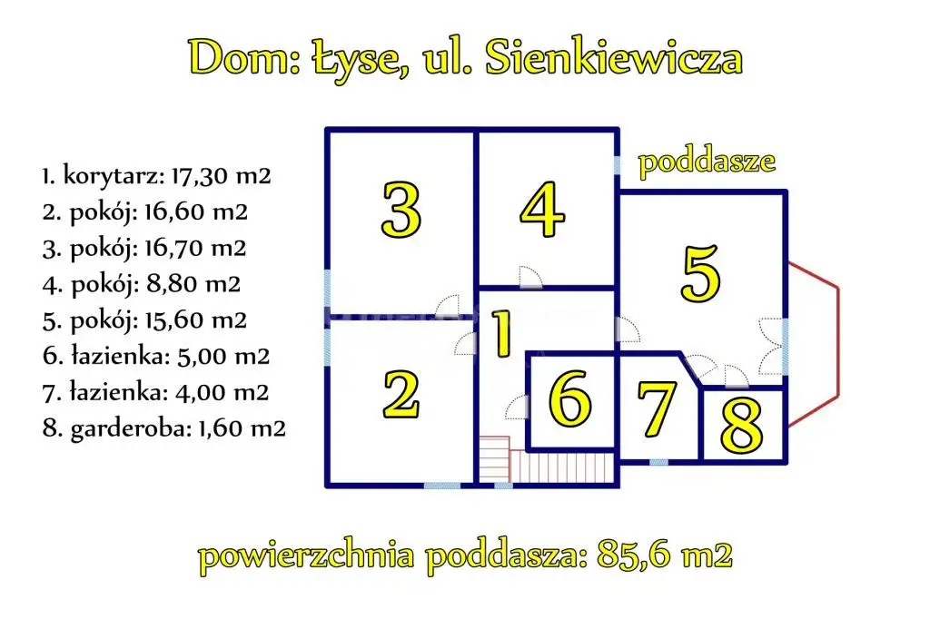 Oferuję na sprzedaż przestronny i funkcjonalny dom o powierzchni użytkowej 201,80 m², zlokalizowany przy ulicy Sienkiewicza w miejscowości Łyse (powiat ostrołęcki). Nieruchomość usytuowana jest na działce o powierzchni 927 m², która oferuje zarówno przestrzeń do życia, jak i możliwość prowadzenia działalności gospodarczej.