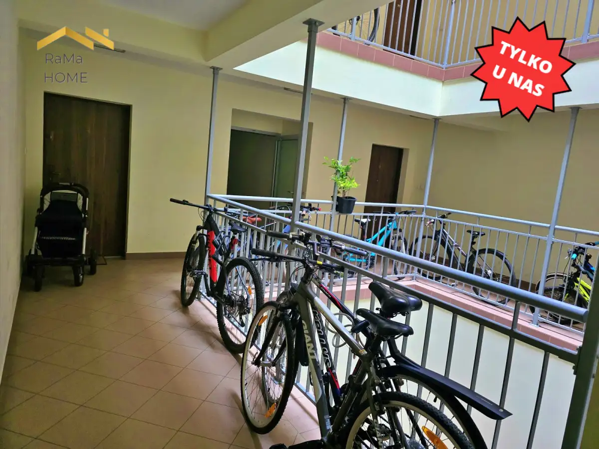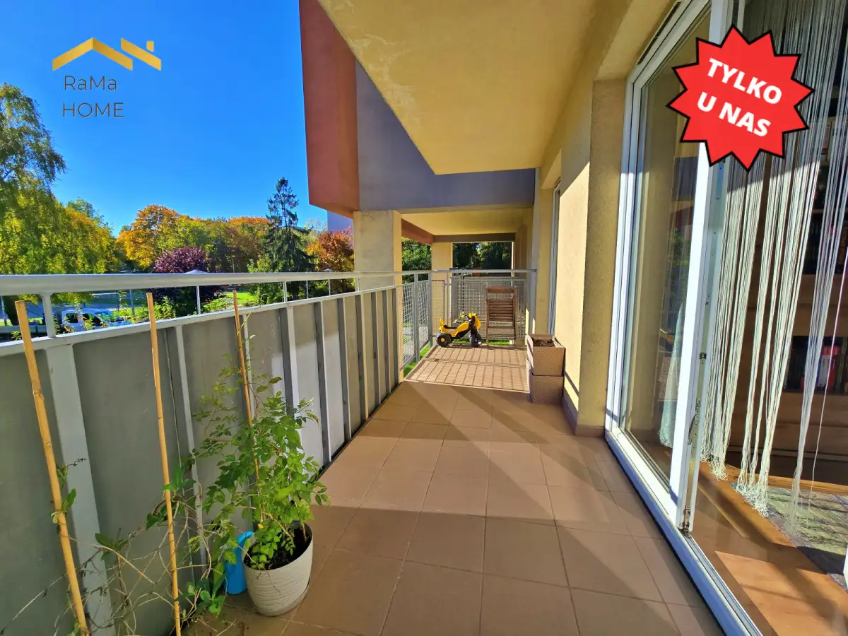 - Balkon: duży, ponad 9m2, z widokiem na zieleń