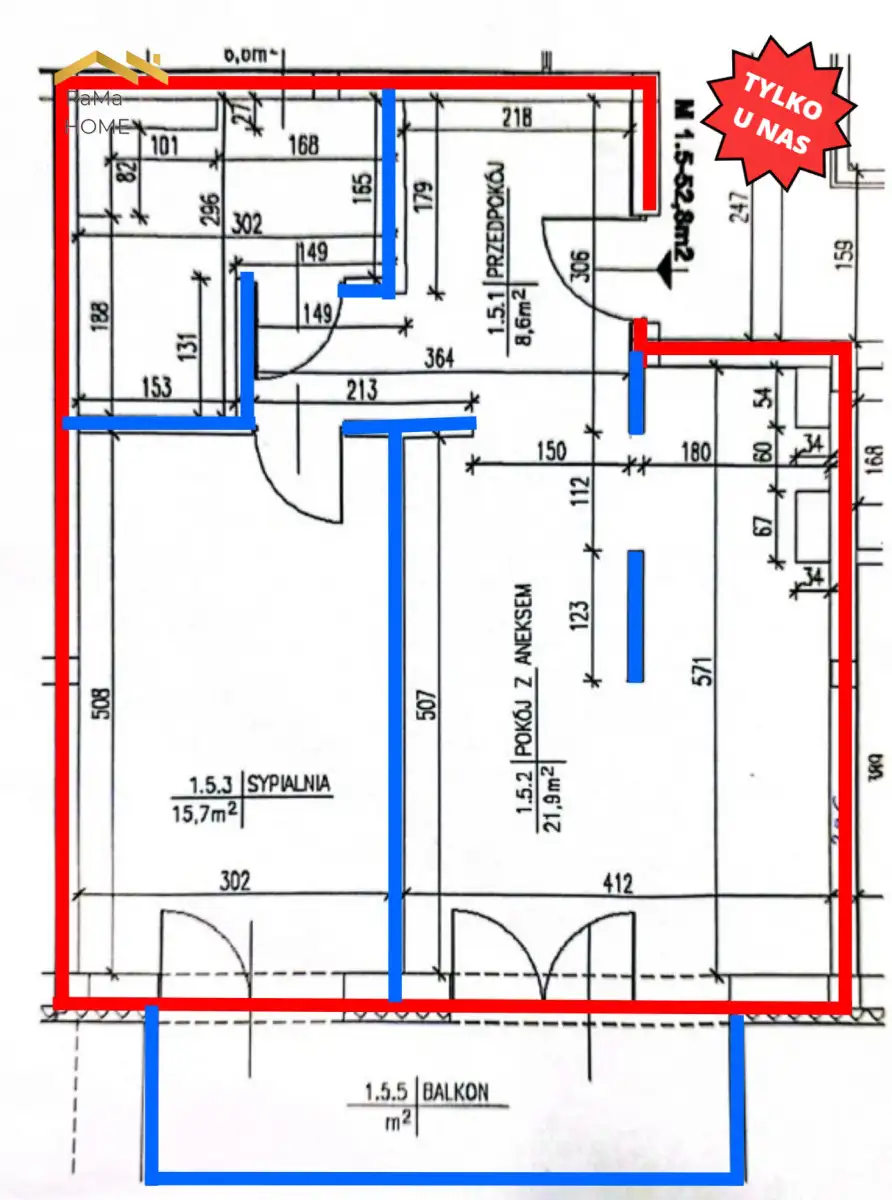 - Powierzchnia: 52,8m²