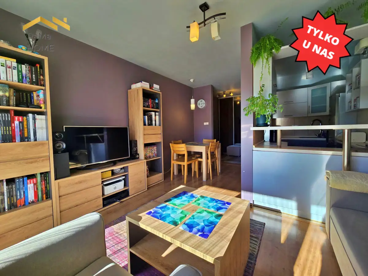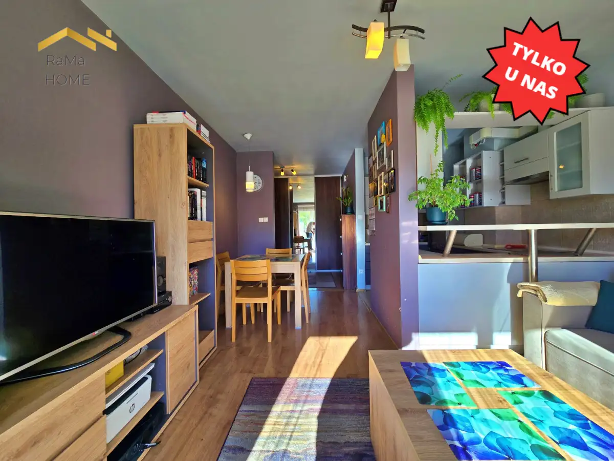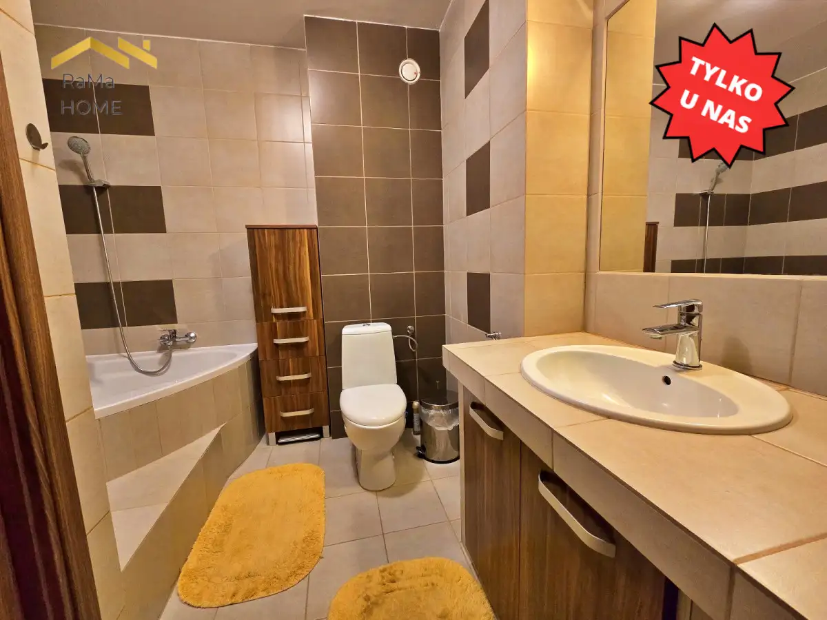 - Pomieszczenia: sypialnia, salon z wydzieloną kuchnią, łazienka z wanną i przedpokój