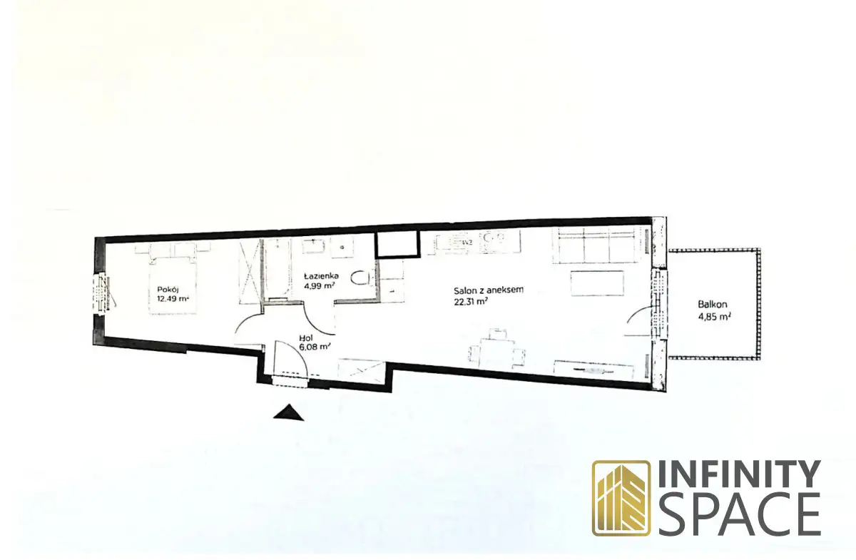 Mieszkanie:Dwupokojowe mieszkanie ma powierzchnię około 47 m² i znajduje się na 6. piętrze budynku (ostatnim). Mieszkanie ma ekspozycję na południowy zachód, co gwarantuje brak hałasu od ruchliwych ulic oraz brak sąsiadów za oknem. Wysokie piętro gwarantuje dobre doświetlenie oraz przyjemny widok z balkonu, na którym będziesz mógł spokojnie odpocząć w słoneczne dni. Komfort termiczny w mieszkaniu zapewnia klimatyzacja. Mieszkanie jest w pełni wykończone i wyposażone we wszystkie niezbędne sprzęty RTV i AGD (zmywarka, piekarnik, płyta indukcyjna, okap, lodówko-zamrażarka, pralka).