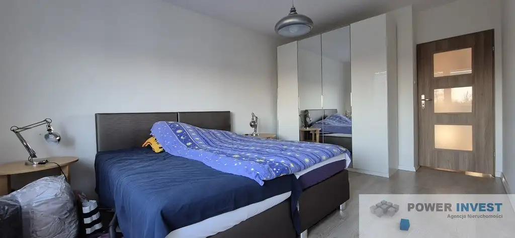 Sypialnia jest również przestronna co czyni to mieszkanie idealne dla osób ceniących sobie przestrzeń.