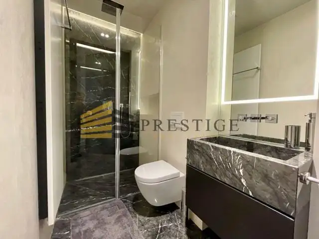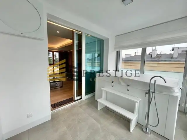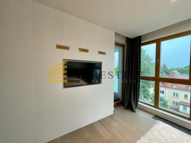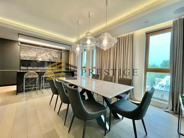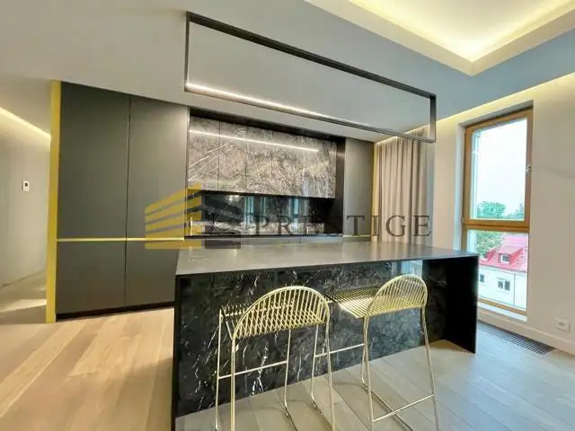 FINISHING STANDARD: The apartment has been finished to a very high standard. Every detail has been taken care of, including stylish marble in the bathrooms, a stone countertop in the kitchen and a beautiful floor. The size of the rooms gives a sense of space, and thanks to the large, panoramic windows, a lot of light enters the apartment. The kitchen has been equipped with reliable built-in equipment from well-known brands, while the bathrooms have high-class Villeroy & Boch fittings, which perfectly match the light stone and many mirrors that optically enlarge the space. The property also has underfloor heating and air conditioning.
