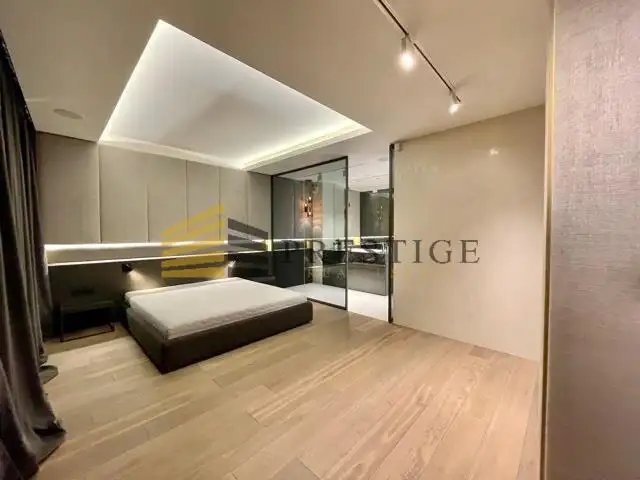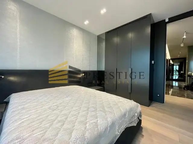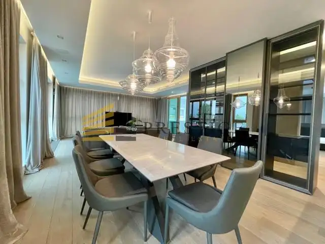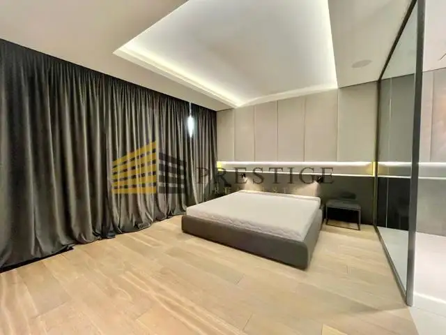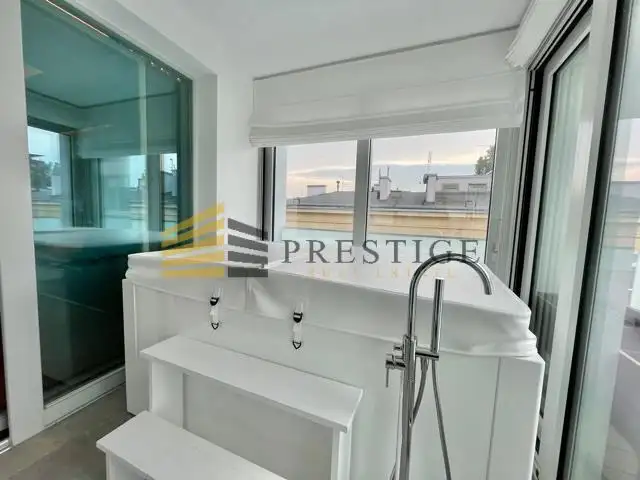 ROOM LAYOUT : The apartment with an area of approximately 160m² is located on the fourth floor of a prestigious building. The residents' apartment is reached by a presidential elevator, which goes directly to the hall. The elegant apartment consists of a living room connected to an open kitchen and dining room, a master bedroom with a bathroom and a wardrobe with access to a built-in balcony with a jacuzzi, 2 smaller bedrooms (both with access to a smaller balcony), a bathroom and a toilet. Additionally, the property has a laundry room and a pantry. The apartment includes 2 parking spaces in the underground garage and a storage room.