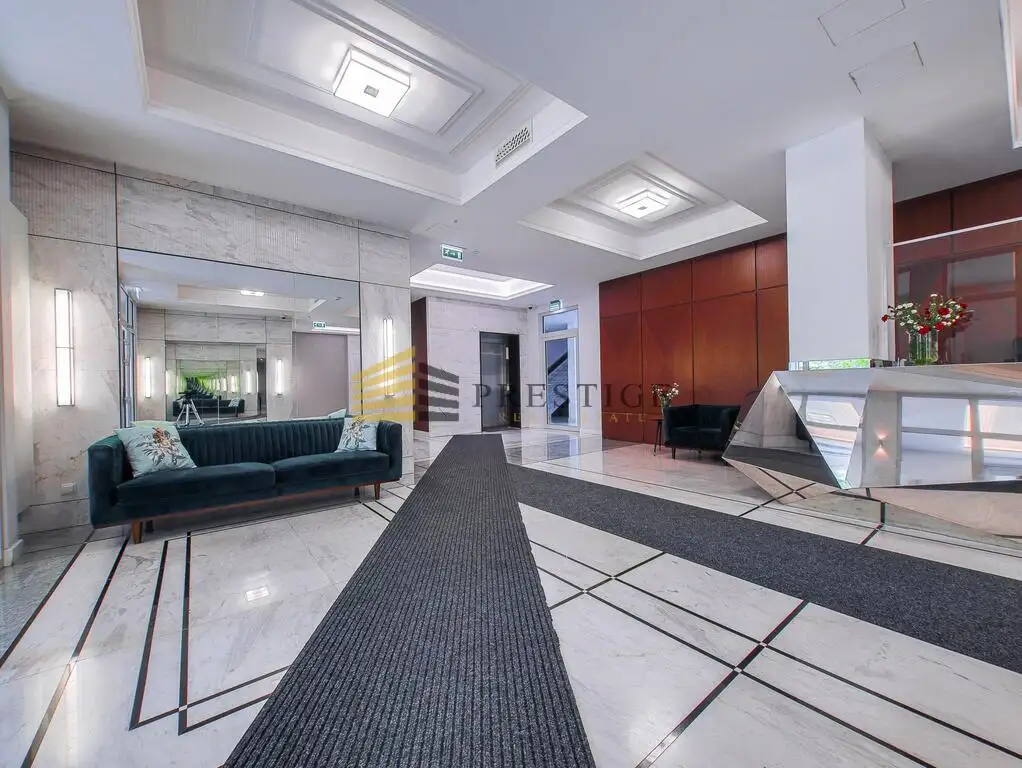 The concierge-style reception provides a representative entrance to the building through an elegant lobby with sofas and coffee tables. The development includes a swimming pool, sauna and gym available exclusively for residents.