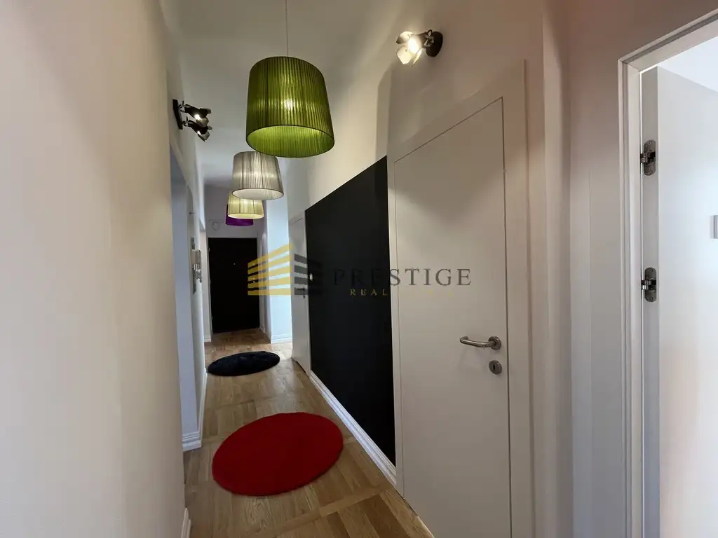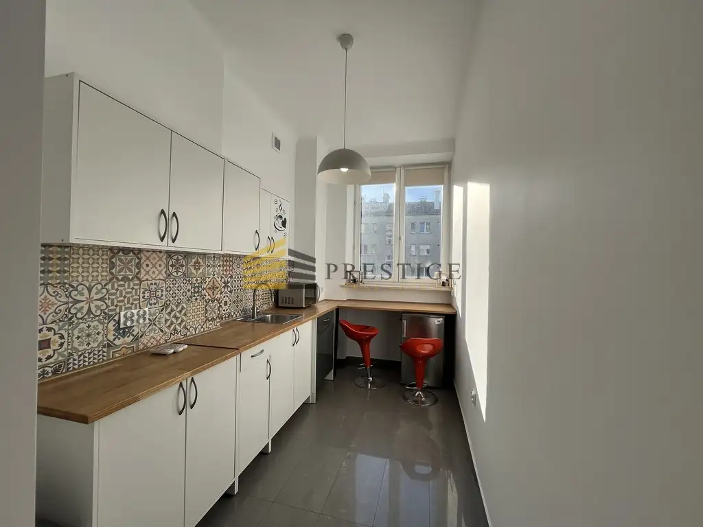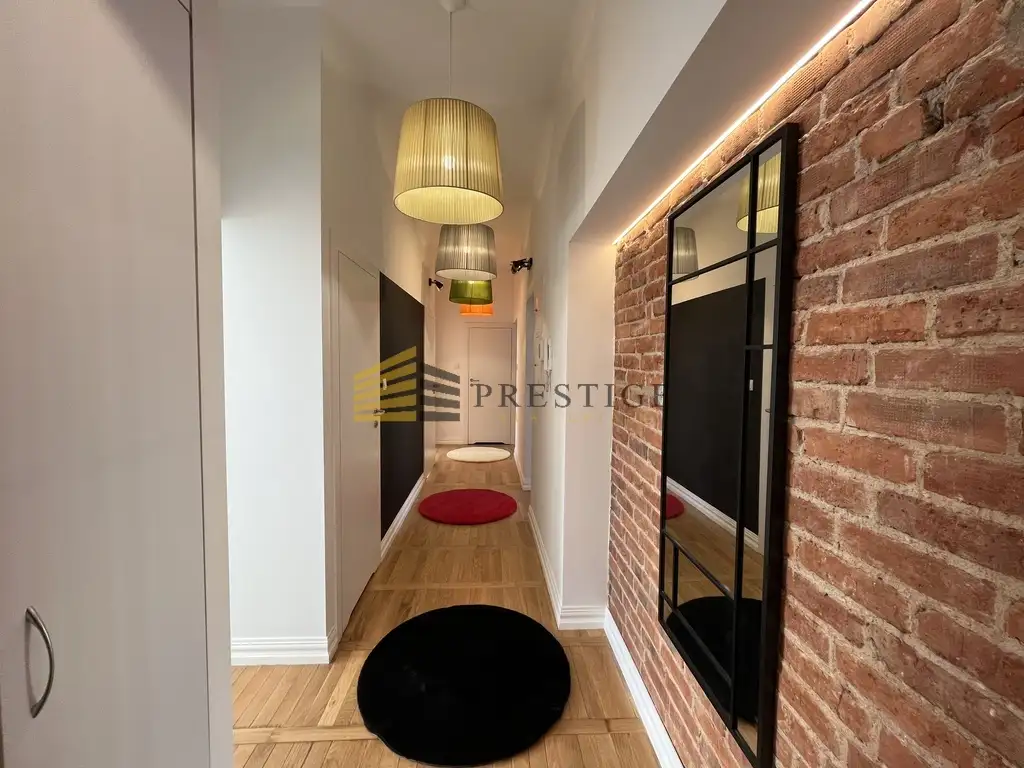 Mieszkanie znajduje się na 2. piętrze w przedwojennej, odrestaurowanej kamienicy z windą. Budynek zachował swój unikalny charakter, a w holu wejściowym można podziwiać oryginalne elementy wystroju, w tym marmurowe wykończenia.