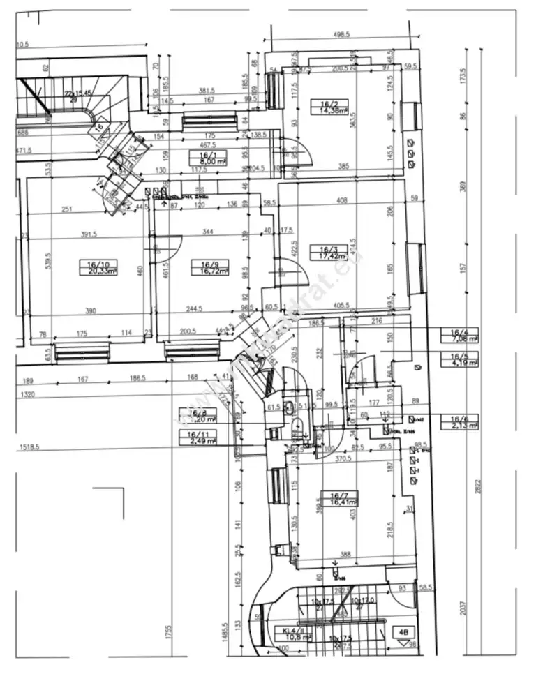 - 5 office rooms, including one office with a balcony with areas of 20 m², 18 m², 17 m², 16 m² and 14 m²,