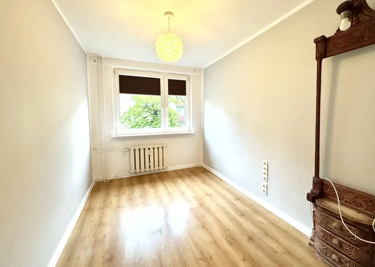Mieszkanie składa się z trzech funkcjonalnych pokoi, osobnej przestronnej kuchni, łazienki, osobnego WC oraz przedpokoju. Do lokalu przynależy także balkon z ekspozycją południową oraz duża piwnica, co zapewnia dodatkową przestrzeń do przechowywania.