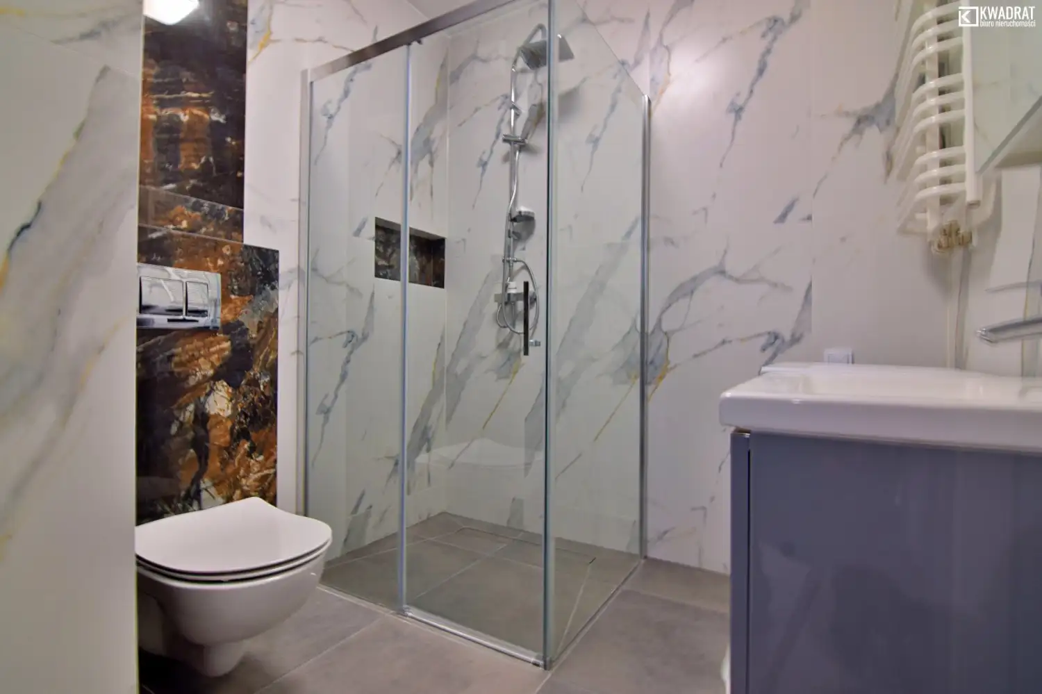 - łazienka z prysznicem typu walk-in,