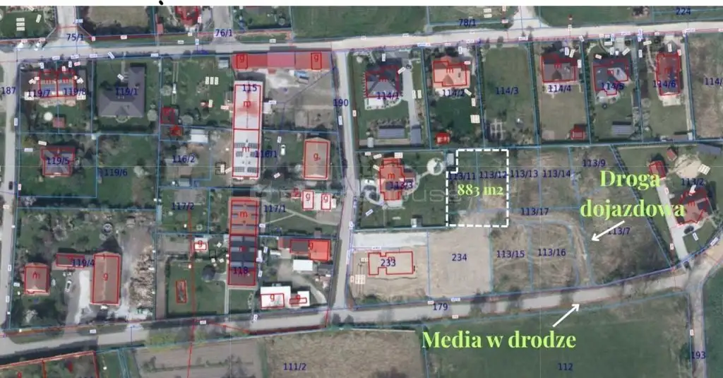 W górnej części działki znajduje się wydzielony fragment o powierzchni ok. 6 x 10 m, który nie wchodzi w skład oferowanej nieruchomości.