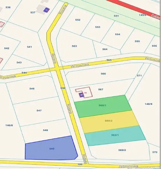 Działki o kształcie zbliżonym do prostokąta poza dz. 549 (kształt wielokąta), nieogrodzone, w części porośnięte pojedynczymi drzewami i krzewami. Wielkość i kształt wszystkich nieruchomości umożliwia racjonalne ich wykorzystanie. Działki nieuzbrojone. Sieć wodociągowa w przyległej drodze – działce oznaczonej numerem 550 (własność Gminy Wicko). Na północnej części działki drogowej 550 (ul. Różana) znajduje się sieć elektroenergetyczna oraz sieć kanalizacji sanitarnej. Dostęp do drogi publicznej zapewniony jest poprzez drogi gminne działki nr 550 (ul. Różana) oraz działkę 565 (ul. Wrzosowa) położone w miejscowości Charbrowo.
