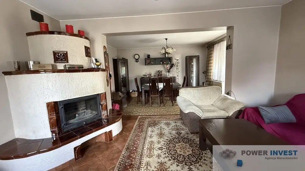 Salon z jadalnią i kominkiem