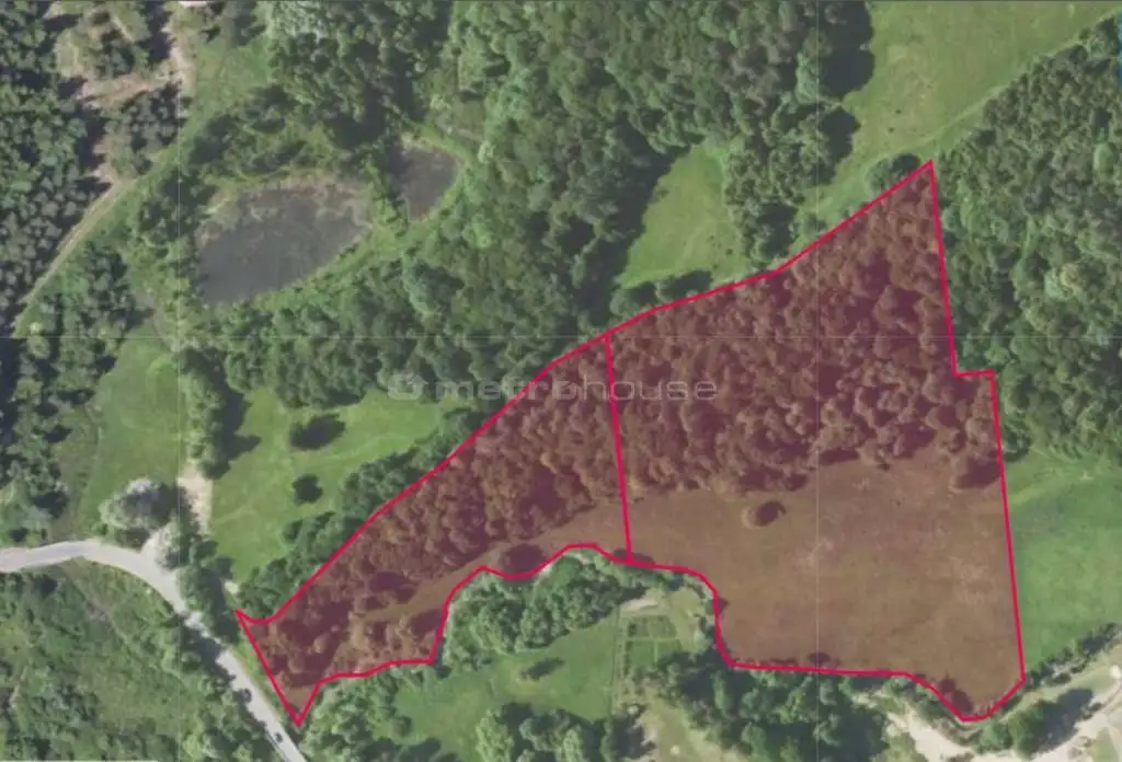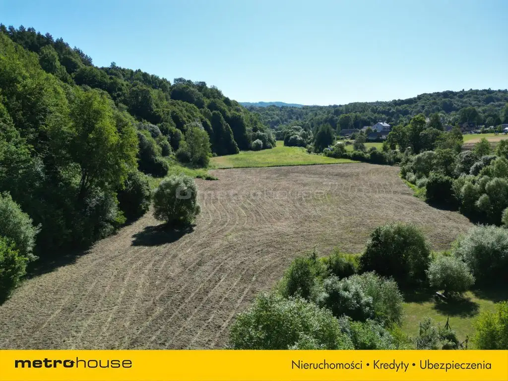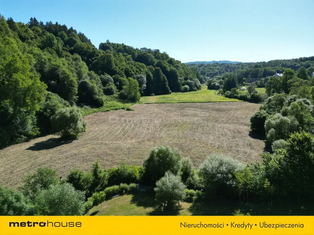 Teren działki jest płaski, z bezpośrednim zjazdem z drogi asfaltowej powiatowej. Nieruchomość częściowo porośnięta jest lasem, posiada nieregularny kształt, a przez jej teren przy granicy przepływa niewielki strumyk, co dodatkowo podkreśla jej naturalny, rekreacyjny charakter.