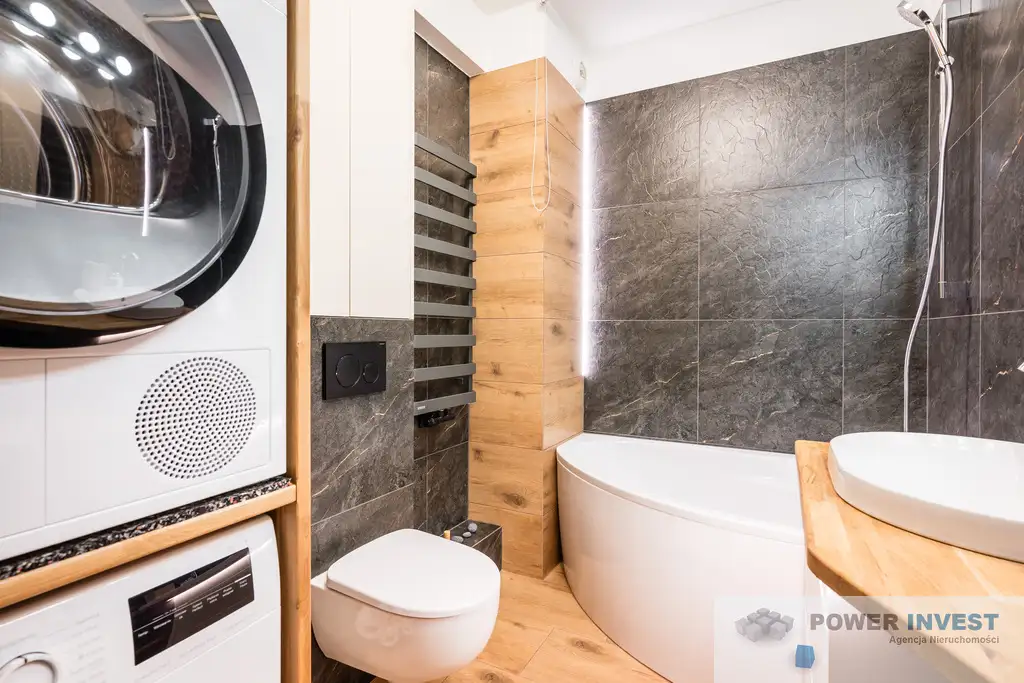 Łazienka z wanną i prysznicem, ogrzewanie podłogowe i podgrzewane lustro