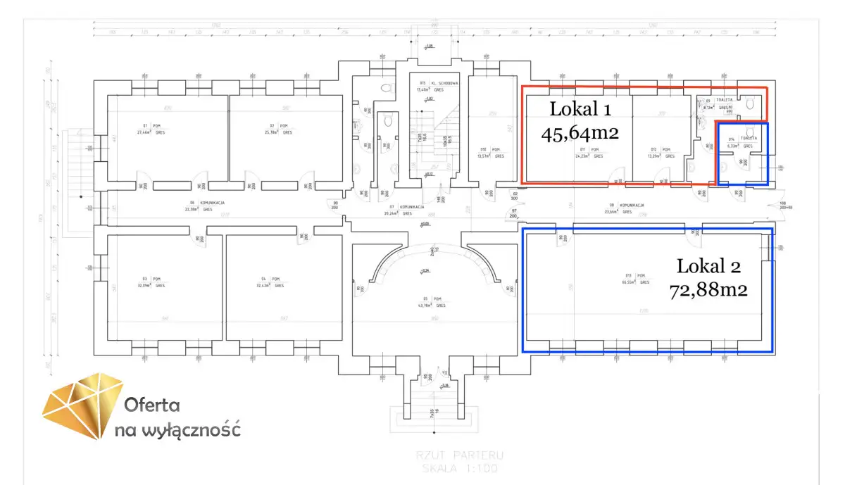 Powierznia biurowo-usługowa w okolicy Starego Miasta! Pokoje biurowe o powierzchni: od 10m 2 do 400m 2 na 4 kondygnacjach kamienicy....