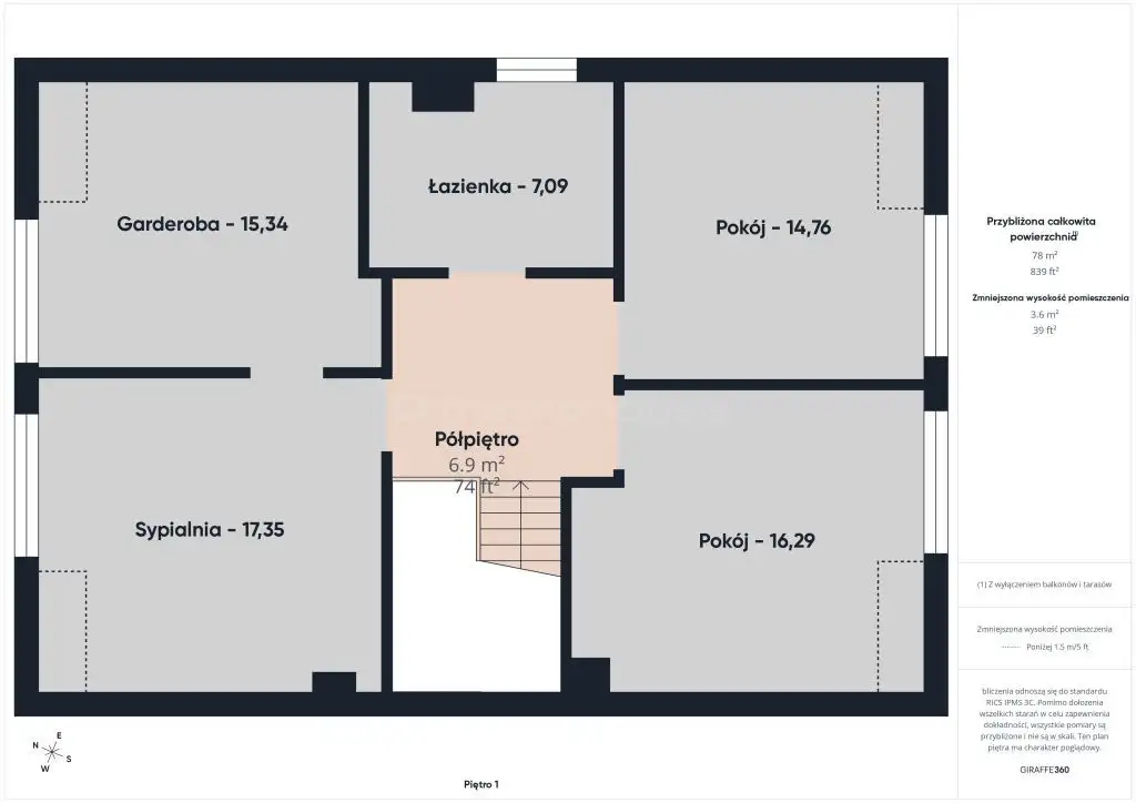 Na tej kondygnacji mieści się łazienka wspólna dla wszystkich pomieszczeń oraz praktyczny strych, idealny do przechowywania rzeczy sezonowych.