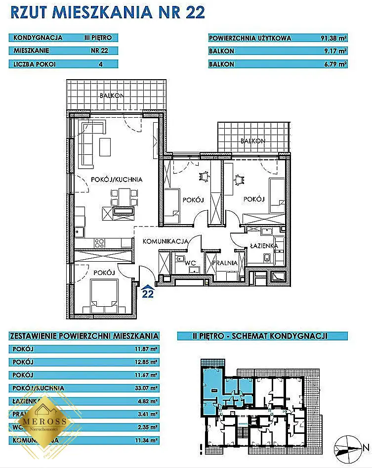 Biuro MEROSS Nieruchomości prezentuje do sprzedaży mieszkanie o powierzchni 61,4 m2 w dzielnicy Północ, usytuowane na czwartym piętrze w bloku...