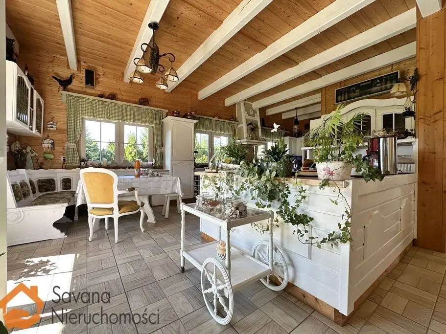 Na posesji wybudowano budynek mieszkalny, garaż, wiatę kawową oraz wiatę grillową z barem.