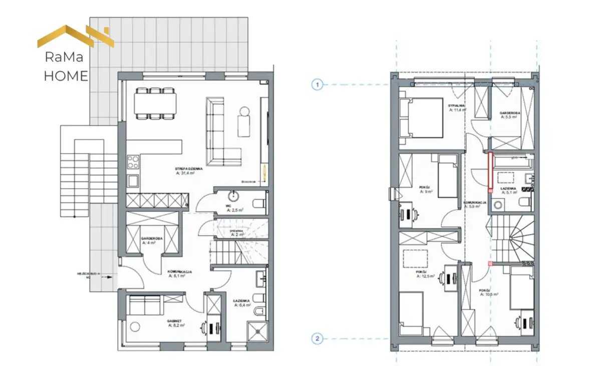 2 Piętro:- 4 sypialnie