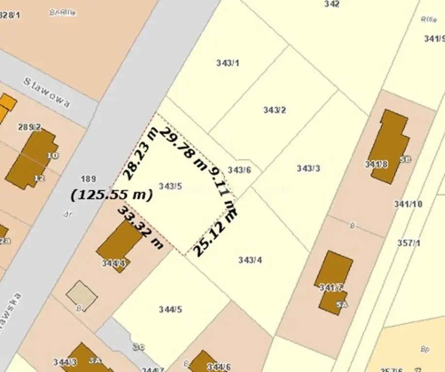 działki mieszkaniowej powstałej na skutek podziału = min. 800 m².