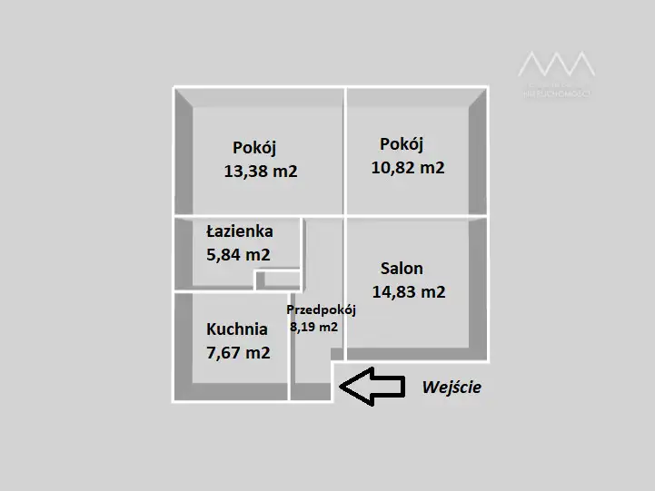 Na mieszkanie o powierzchni 60,73 m² składa się: