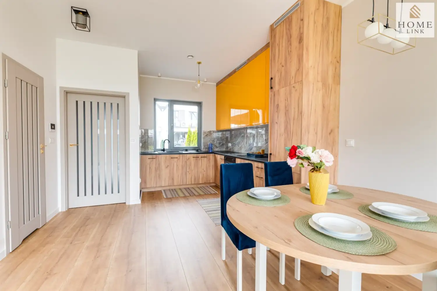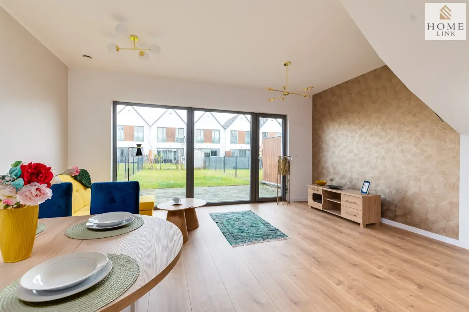 Oferuję do sprzedaży jeden z dwóch dwukondygnacyjnych domów w zabudowie szeregowej usytuowany na osiedlu Harmonia Park w Różnowie. Jest to owe osiedle zlokalizowane na obrzeżach Olsztyna, na pograniczu Dywit i Różnowa. Stworzone zostało z myślą o osobach, które cenią sobie życie w otoczeniu natury z jednoczesną bliskością miasta. Osiedle spełnia wszystkie wymagania stawiane przez współczesność - łączy wygodę codziennego użytkowania z troską o poszanowanie środowiska naturalnego. Nieruchomość, poza samym domem, to również ogród, którego powierzchnia wynosi około 80 m 2 , za to na letnie spotkania z rodziną i przyjaciółmi idealnie sprawdzi się taras, którego powierzchnia wynosi 20 m 2 . Do dyspozycji każdego z właścicieli jest zadaszone miejsce postojowe na 1 auto oraz miejsce na drugi - mniejszy samochód lub rowery/motocykle czy quad.