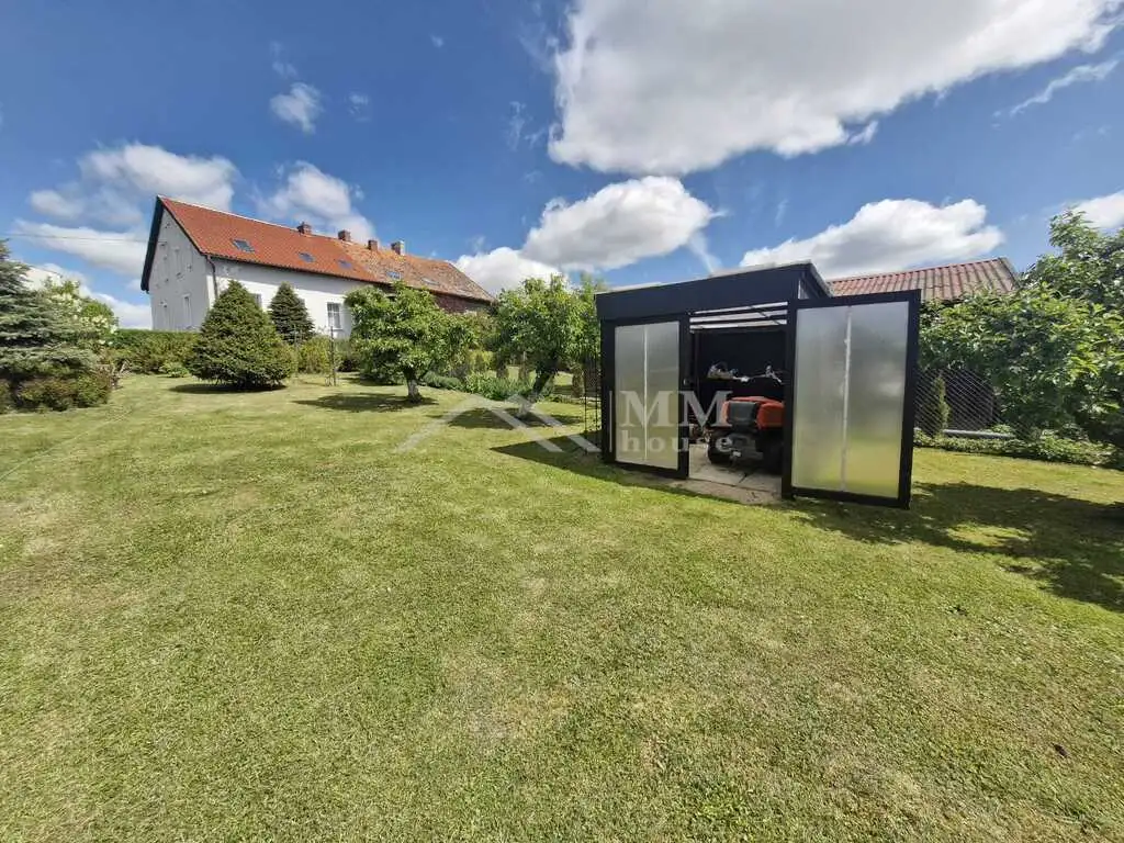 - Trzy duże garaże – z łatwym wjazdem, idealne na sprzęt, maszyny lub pojazdy ciężarowe.