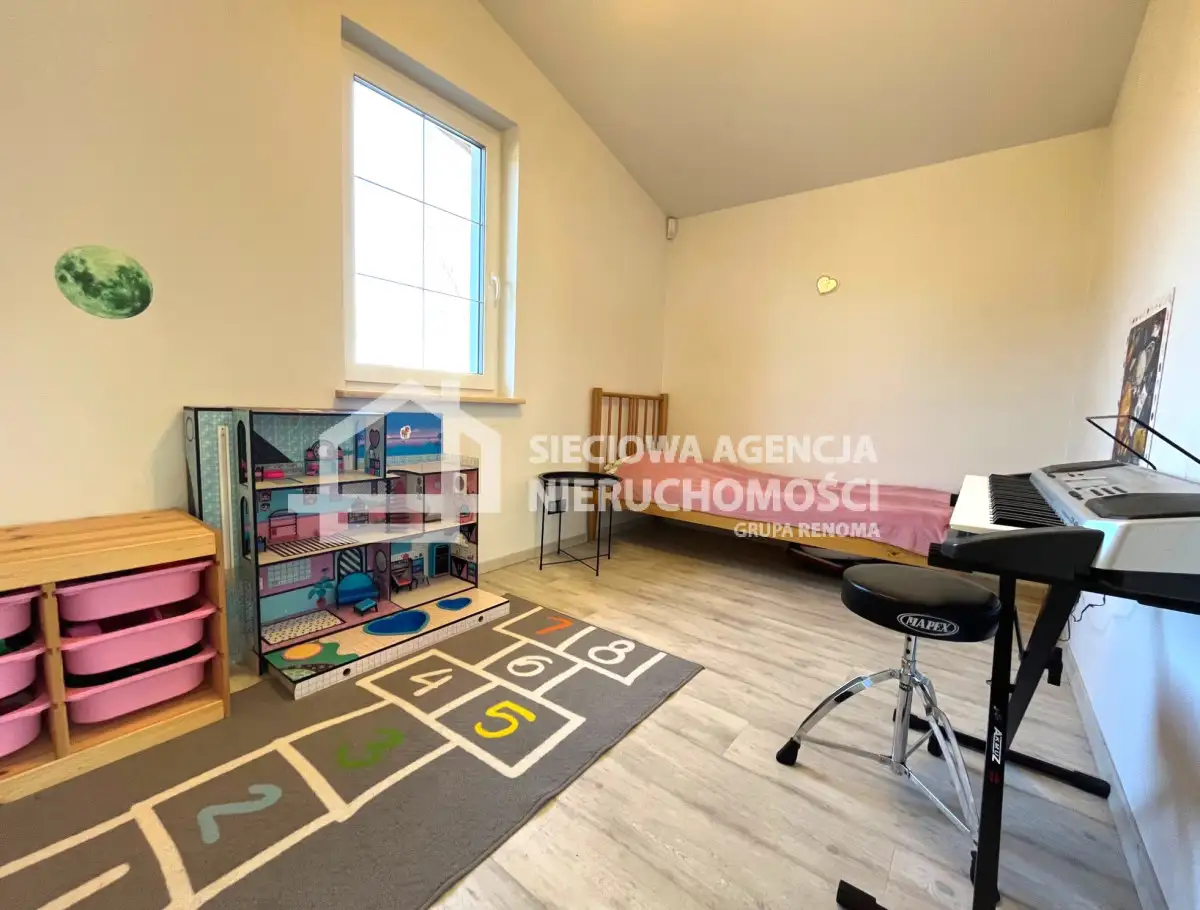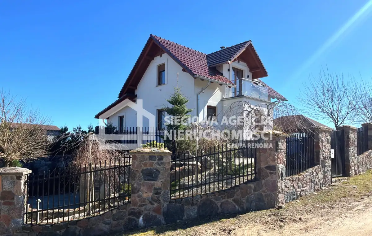 BUDYNEK stoi na dużej działce, blisko lasu i blisko jeziora... Całość ogrodzona jest płotem z kamienia, wjazdy i chodniki wyłożoną są kostką brukową. Ogród skąpany jest w słońcu, w części rekreacyjnej mamy altanę, plac zabaw oraz drewutnię.