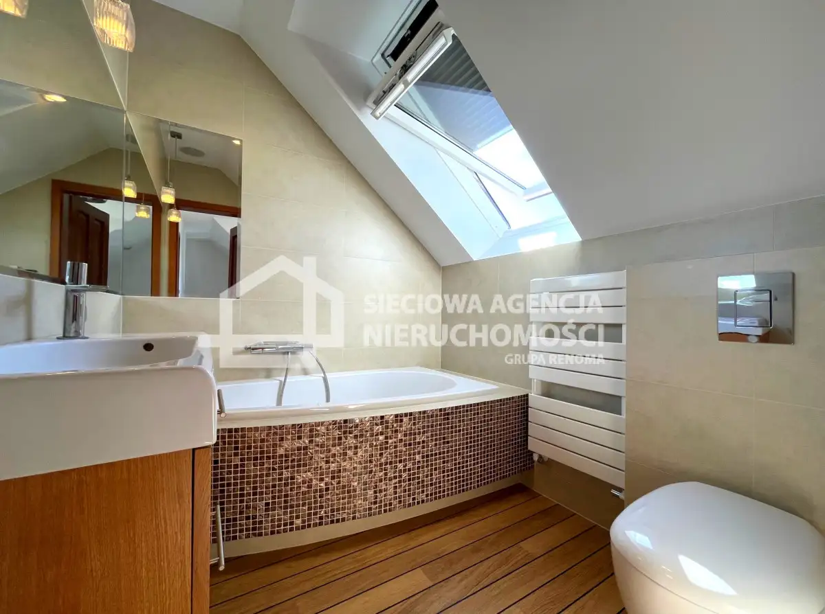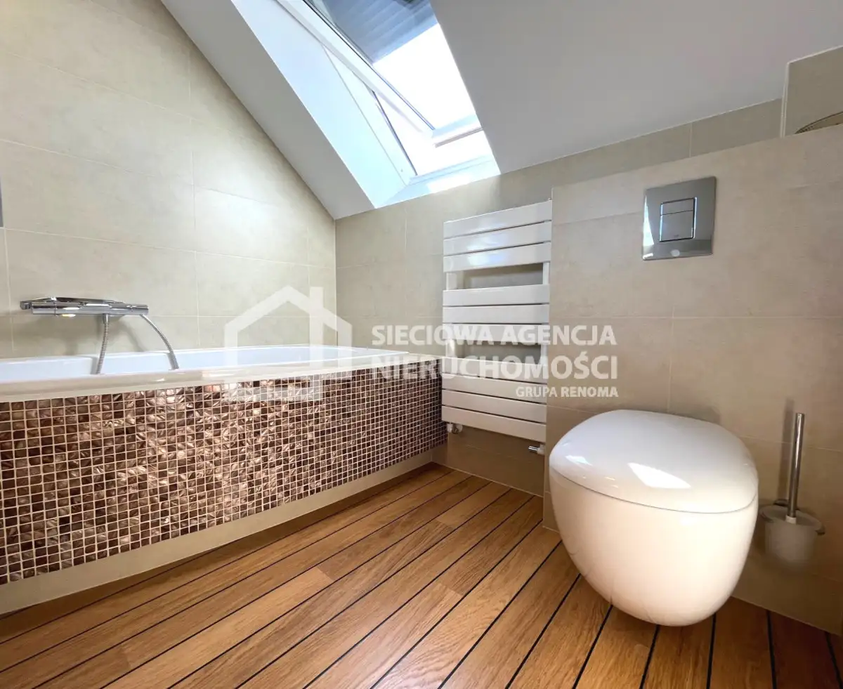 Na piętrze mamy dwie sypialnie i łazienkę z wanną.