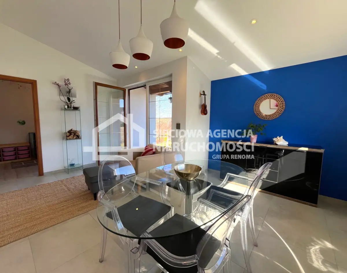 Dom został wybudowany z dbałością o każdy detal i funkcjonalność, z zastosowaniem energooszczędności w oparciu o system sterowania inteligentnym domem KNX, dla wszystkich zastosowań w nowoczesnym domu, począwszy od oświetlenia, ogrzewania, wentylacji, klimatyzacji, sterowania roletami zewnętrznymi, systemów bezpieczeństwa, monitoringiem, alarmów, zarządzania energią, inteligentnych liczników, a także urządzeń gospodarstwa domowego, audio/wideo i wielu innych.