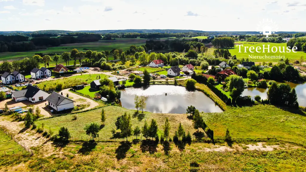 W centralnym punkcie "osiedla" znajduje się zadbany staw, do którego mamy bezpośredni dostęp z działki. Staw jest na bieżąco czyszczony i zarybiany, zapewniając czystość wody i atrakcyjność dla miłośników przyrody. Staw jest przedzielony groblą i odpowiednio zdrenowany. Został zaprojektowany tak, aby zapewniać bezpieczeństwo i komfort, nie tylko jako element estetyczny, ale również jako część naturalnego ekosystemu. To idealne miejsce do relaksu, spacerów, czy nawet wędkowania.